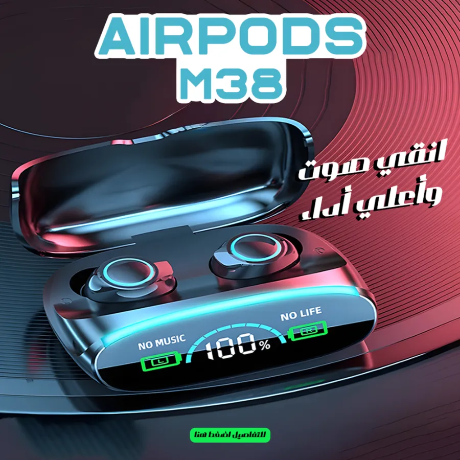 • "Airpods M38 🎧✨ صوت نقي وجودة خرافية! عيش تجربة اللاسلكي براحة وأناقة 🔋🎵"